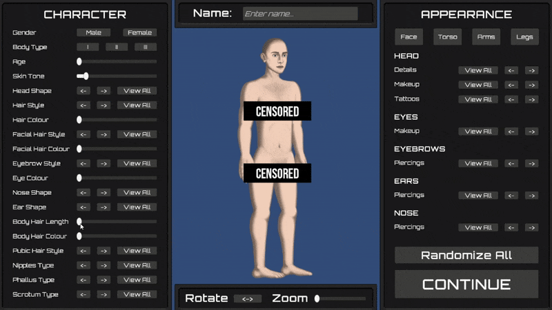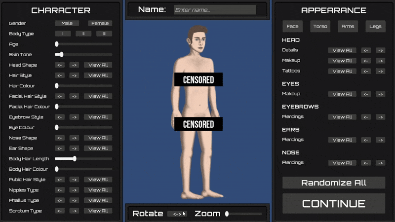 Once that’s all wrapped up, I’ll work through a final polish pass – creating smooth animations for the UI, adding zoom/pan functionality, changing the anatomy fields to sliders, adding a proper background scene for the character, and completely revamping the GUI (no more ugly plain grey). I’ll also implement randomisation functionality and save/load support in general (pretty important step lol).